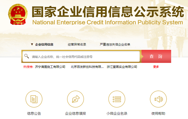 1、国家企业信用信息公示系统。可以查询到国内公司的注册登记基本情况,以及许可审批、行政处罚、抽查结果、经营异常状态、严重违法失信等信息。需要注意的是,在该系统上能查到该公司仅代表该公司注册登记过,并不代表该公司经营内容合法,而且注册资本由申请者自主填写,并不代表公司实力。